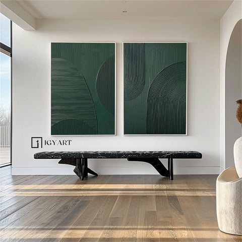 (Set of 2 Green Abstract Painting For Hallway)