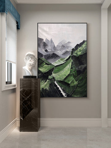 Though normally short on the concern list, these typically narrow locations that blaze a trail up stairways, between bedrooms, and through entranceways can Hang original abstract art, so that it immediately stands out and attention of anyone who walks through the hallway.featuring captivating and remarkable Modern art that sets the stage for a skillfully created home.